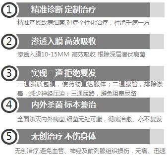 前列腺分型排毒法,是采用中药名方+腔道介入联合分型对症“通”腺,具有30秒穿透包膜无痛无创、30分钟见效、48小时改善症状、7天标本兼治、治疗安全、费用经济的突出优势,使众多前列腺疾病患者用更经济的治疗成本,在更短时间内得到全面康复,受到了前列腺疾病患者的一致好评。